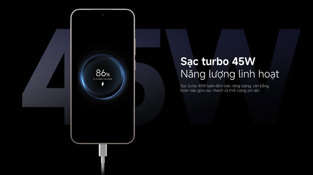Tuổi thọ pin cũng được hãng cam kết lên tới 6 năm với hơn 1600 chu kỳ sạc mà vẫn giữ được dung lượng trên 80%. Khi cần nạp năng lượng, sạc nhanh Turbo 45W sẽ giúp rút ngắn thời gian chờ đợi đáng kể để bạn quay lại công việc nhanh nhất có thể. Thêm một tính năng khá tiện là sạc ngược 22.5W, giúp chiếc điện thoại biến thành một trạm sạc dự phòng di động để nạp pin cho tai nghe hoặc đồng hồ thông minh khi cần thiết.